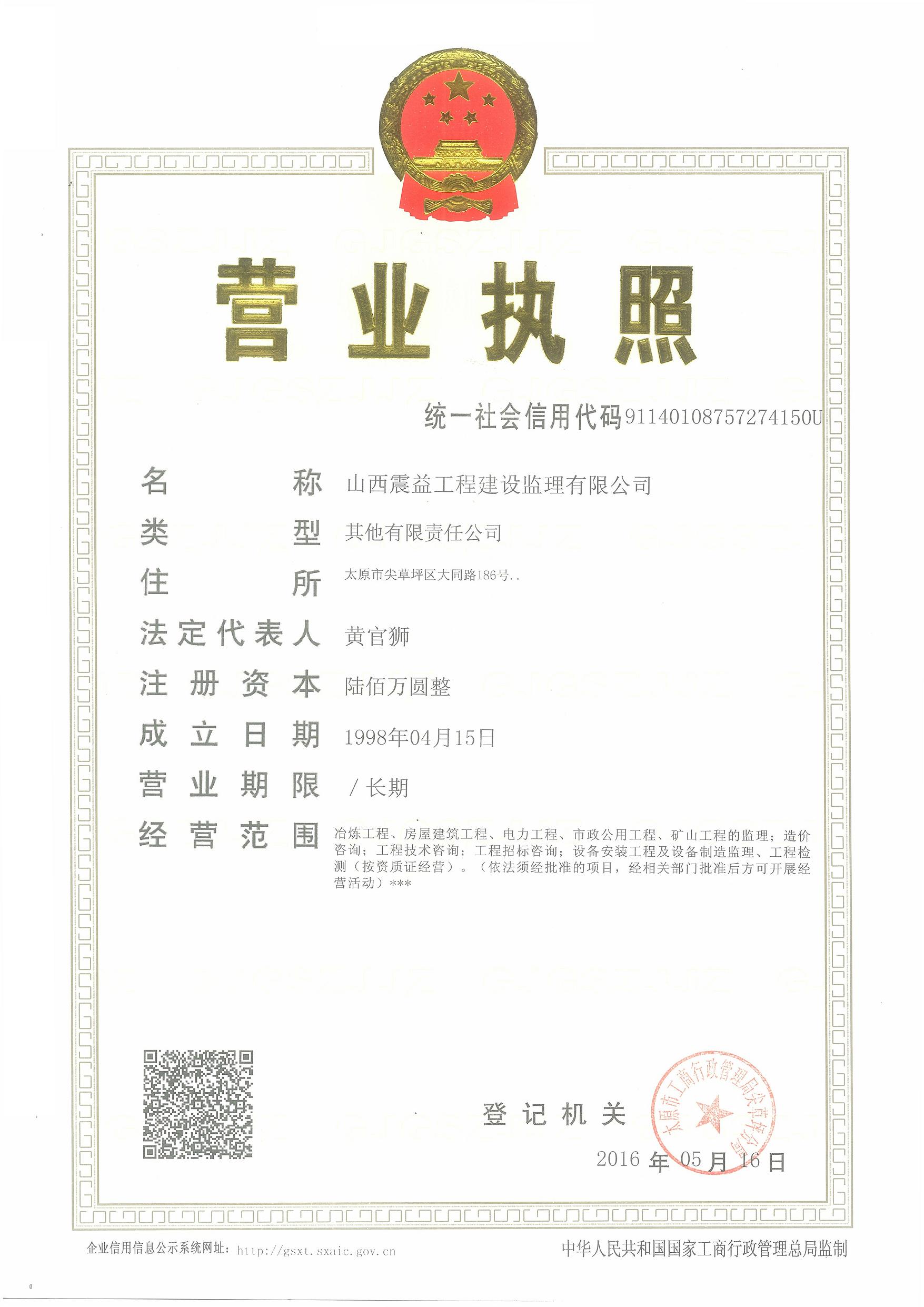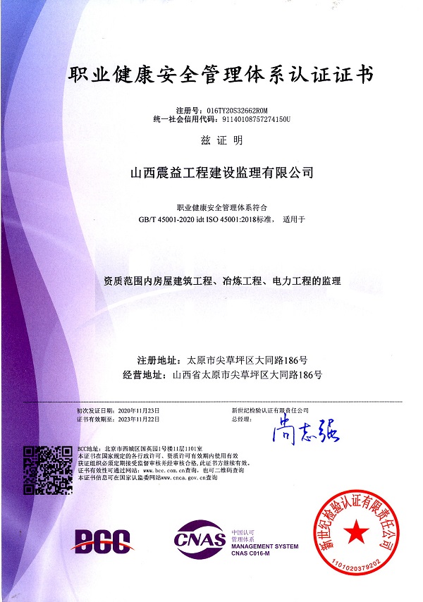 山西震益工程建設監理有限公司【原太原鋼鐵(集團)工程建設監理有限公司】成立于 1998年4月,注冊資金 600 萬元,是******批準的具有甲級執業資質的綜合性工程咨詢服務企業,具有冶煉工程、電力工程、礦山工程、房屋建筑工程、市政公用工程等5個工程監理甲級資質和設備監理甲級資質。主要業務涉及冶金、房屋建筑、礦山、電力、市政、機械、環保等領域的工程建設監理、設備監理、工程咨詢、造價咨詢、檢測試驗等。公司建立了質量ISO9001:2015標準、環境ISO14001:2015標準、職業健康******GB/T28001-2011 idt OHSAS 1800:2007標準 “三標一體”管理體系,是中國設備監理協會常務理事、中國冶金建設監理協會常務理事和山西省監理協會副會長單位。
